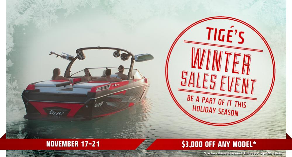 ABILENE, TX—Tige Boats invites you to join the Tige family this holiday season. There is no greater time than now with $3,000 of one-time savings from November 17-21 at your local Tige dealer.