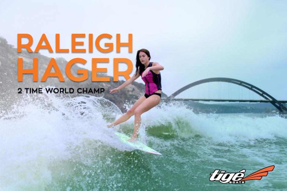 Tige Boats is excited to welcome Raleigh Hager to their elite team of Pro Wakesurfers. Born and raised in Austin, TX, Raleigh is the “one to watch” in the Pro Women Surf category and is one of the most recognized females in the sport. The 2 Time World Champion regularly surfs Lake Austin behind her 2016 Tige RZX with the TAPS 3 Surf System.